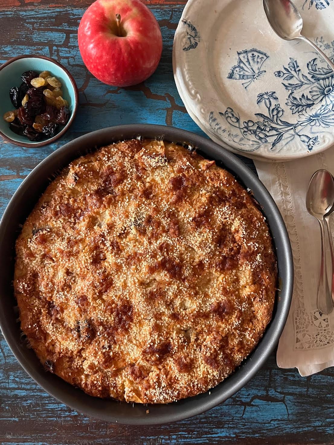Alsatian Bread Pudding with Apples and Raisins
